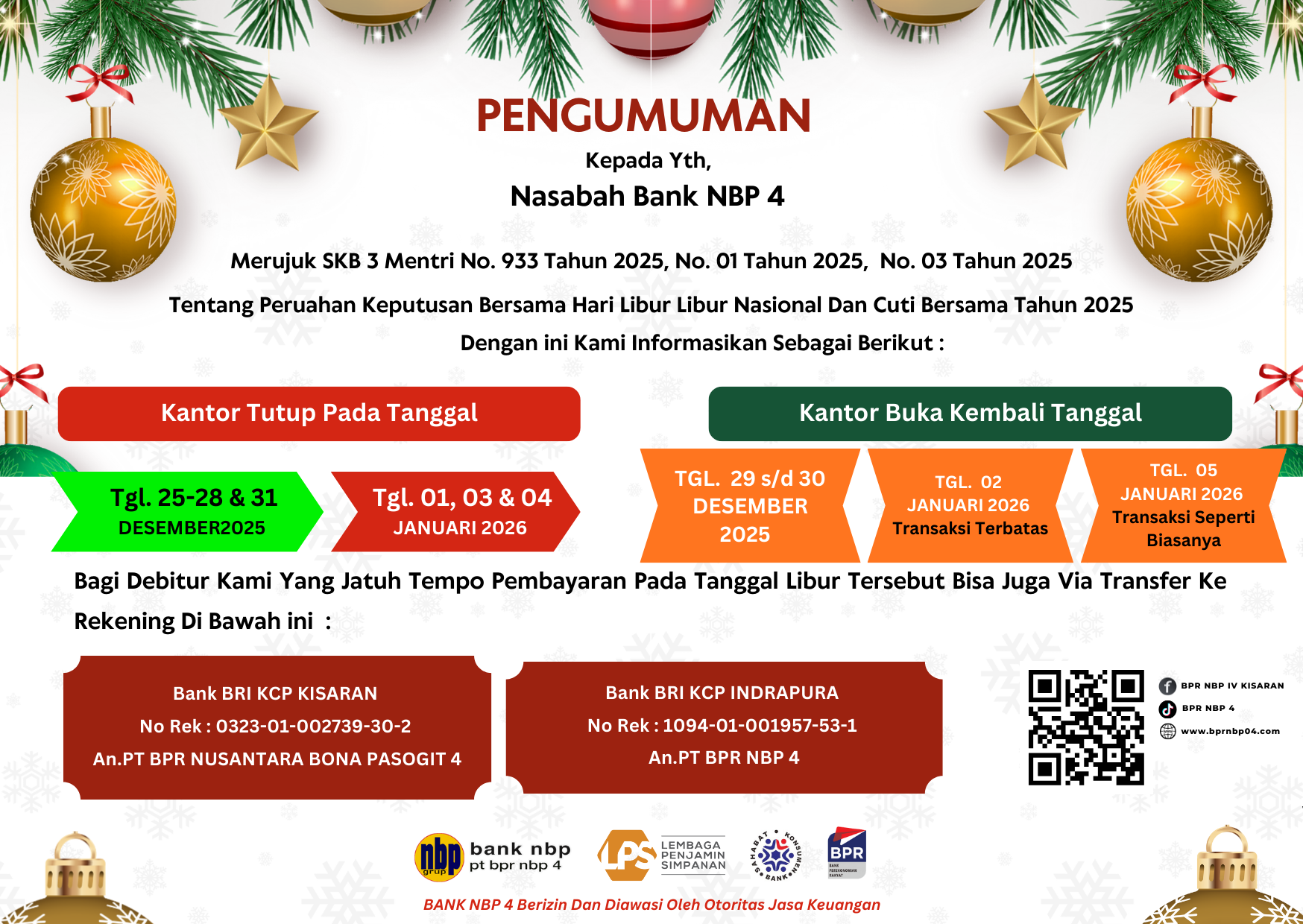 Tabungan Hari Raya “THR” adalah simpanan uang di BPR NBP 4 dimana pengambilannya atau penarikannya dapat dilakukan setiap Hari Raya Keagam